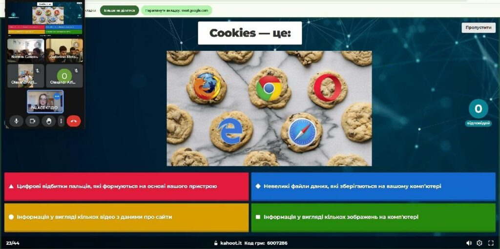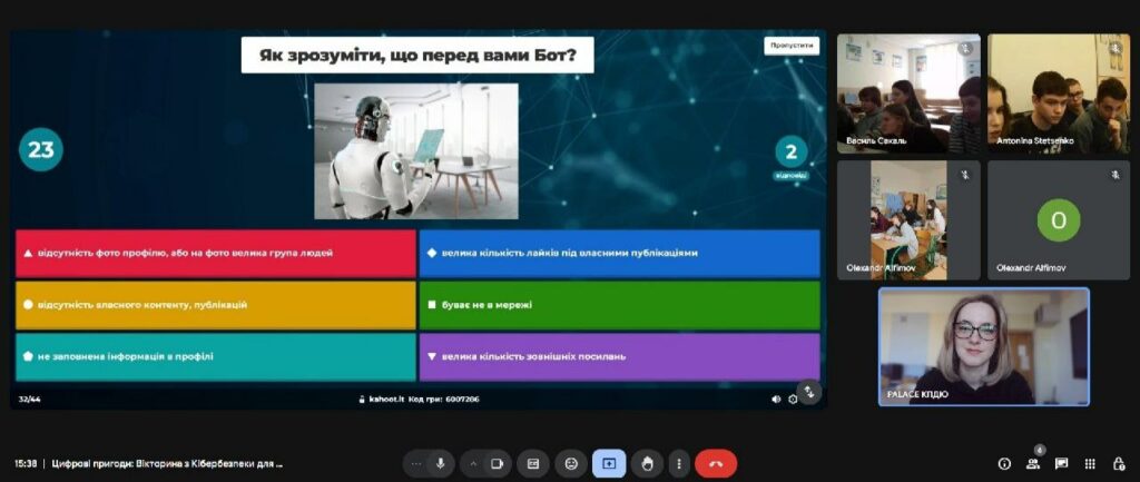 Весна в Київському Палаці дітей та юнацтва насичена різними змаганнями, конкурсами, фестивалями та вікторинами. Тож, кожною весною відділ STEM-освіти проводить багато заходів в рамках фестивалю STEAM FEST. Один з них Онлайн-вікторина з кібербезпеки для молодих інтернет-дослідників “Цифрові пригоди” код гри на Kahoot! не взломали, а ввели, на питання відповіли і час із користю провели.